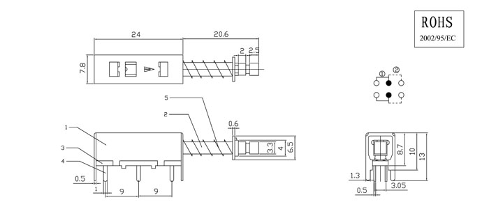 額定負荷 | DC 50V 0.1A-1.0A | 操作力 | 250g±100g |
