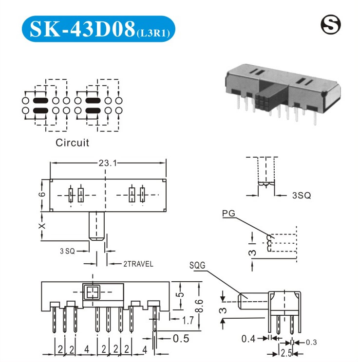 SK-43D08 詳細資料 產品說明: 技術指標: 使用溫度范圍 -20~+70℃ 耐壓 AC250V(50Hz)/min 額定負荷 DC 50V 0.5A 動作力 250±100gf 接觸電阻 ≤0.05Ω 機械壽命 10000次 絕緣電阻 ≥100MΩ
