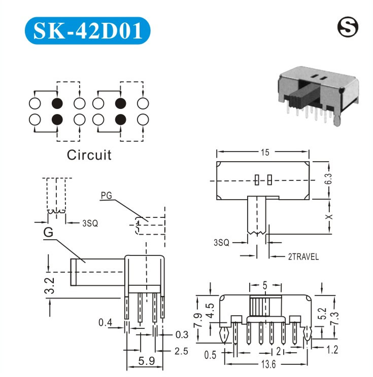 SK-42D01 詳細資料 產品說明: 技術指標: 使用溫度范圍 -20~+70℃ 耐壓 AC250V(50Hz)/min 額定負荷 DC 50V 0.5A 動作力 250±100gf 接觸電阻 ≤0.05Ω 機械壽命 10000次 絕緣電阻 ≥100MΩ