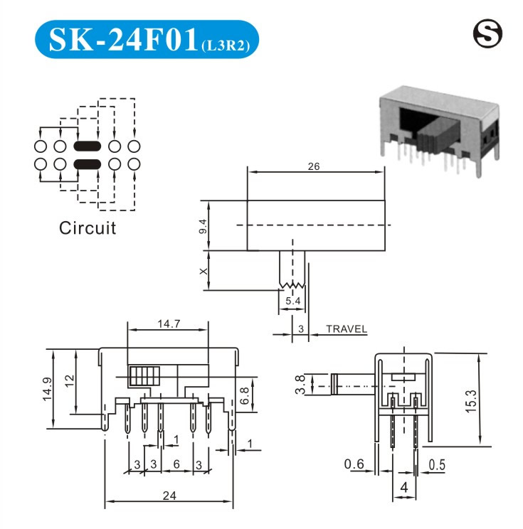 SK-24F01 詳細資料 產(chǎn)品說明: 技術(shù)指標: 使用溫度范圍 -20~+70℃ 耐壓 AC250V(50Hz)/min 額定負荷 DC 50V 0.5A 動作力 250±100gf 接觸電阻 ≤0.05Ω 機械壽命 10000次 絕緣電阻 ≥100MΩ