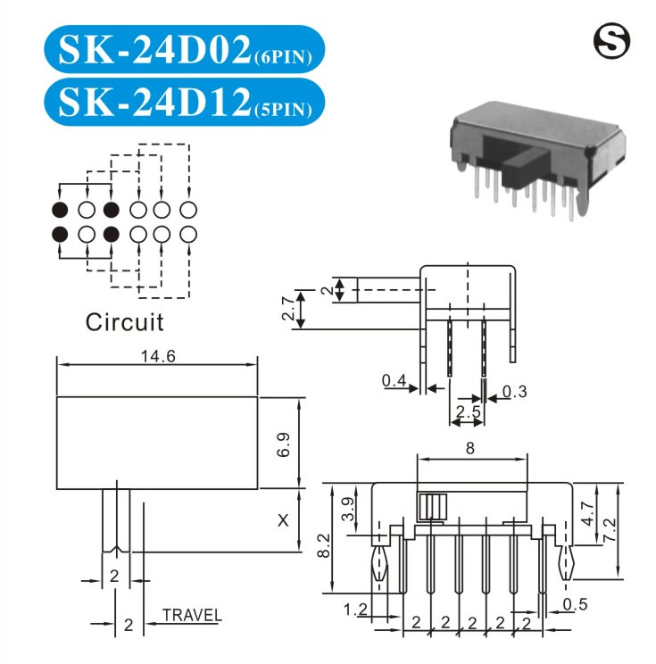SK-24D02 詳細資料 產品說明: 技術指標: 使用溫度范圍 -20~+70℃ 耐壓 AC250V(50Hz)/min 額定負荷 DC 50V 0.5A 動作力 250±100gf 接觸電阻 ≤0.05Ω 機械壽命 10000次 絕緣電阻 ≥100MΩ