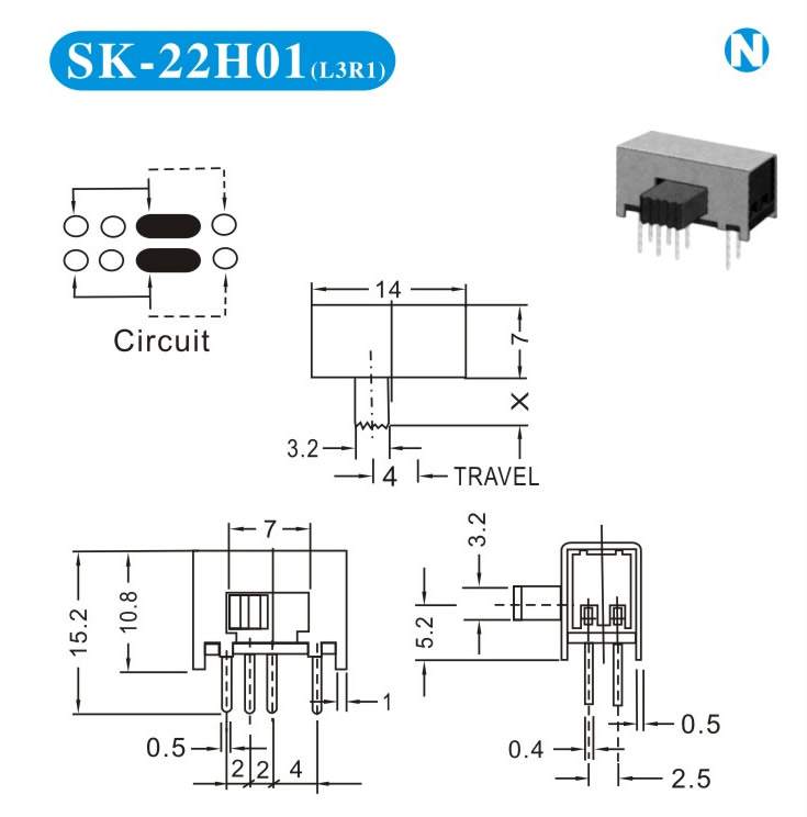 SK-22H01 詳細資料 產品說明: 技術指標: 使用溫度范圍 -20~+70℃ 耐壓 AC250V(50Hz)/min 額定負荷 DC 50V 0.5A 動作力 250±100gf 接觸電阻 ≤0.05Ω 機械壽命 10000次 絕緣電阻 ≥100MΩ