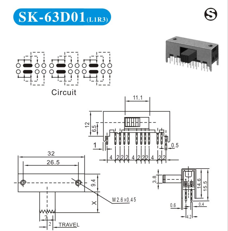 SK-63D01 詳細資料 產品說明: 技術指標: 使用溫度范圍 -20~+70℃ 耐壓 AC250V(50Hz)/min 額定負荷 DC 50V 0.5A 動作力 250±100gf 接觸電阻 ≤0.05Ω 機械壽命 10000次 絕緣電阻 ≥100MΩ