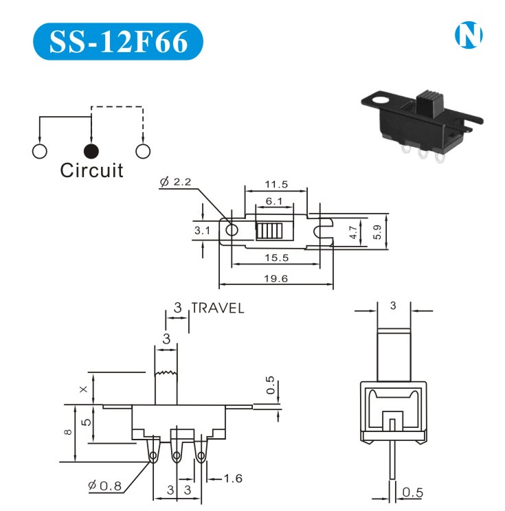 SS-12F66 詳細資料 產(chǎn)品說明: 技術(shù)指標: 使用溫度范圍 -20~+70℃ 耐壓 AC250V(50Hz)/min 額定負荷 DC 50V 0.5A 動作力 250±100gf 接觸電阻 ≤0.05Ω 機械壽命 10000次 絕緣電阻 ≥100MΩ