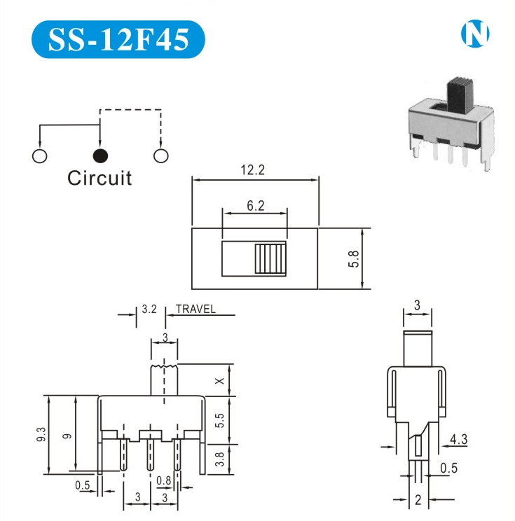 SS-12F45 詳細資料 產品說明: 技術指標: 使用溫度范圍 -20~+70℃ 耐壓 AC250V(50Hz)/min 額定負荷 DC 50V 0.5A 動作力 250±100gf 接觸電阻 ≤0.05Ω 機械壽命 10000次 絕緣電阻 ≥100MΩ