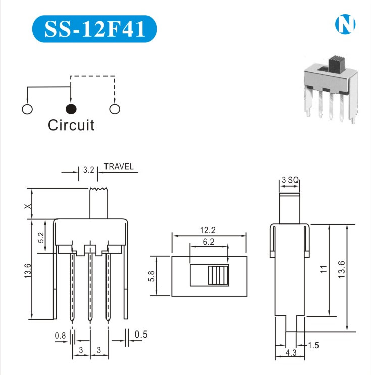 SS-12F41 詳細資料 產品說明: 技術指標: 使用溫度范圍 -20~+70℃ 耐壓 AC250V(50Hz)/min 額定負荷 DC 50V 0.5A 動作力 250±100gf 接觸電阻 ≤0.05Ω 機械壽命 10000次 絕緣電阻 ≥100MΩ