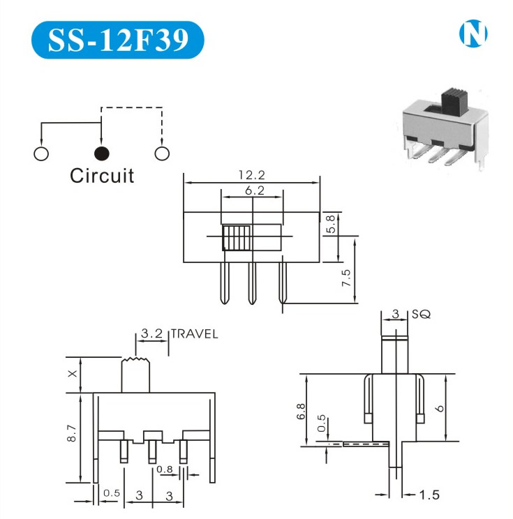 SS-12F39 詳細資料 產品說明: 技術指標: 使用溫度范圍 -20~+70℃ 耐壓 AC250V(50Hz)/min 額定負荷 DC 50V 0.5A 動作力 250±100gf 接觸電阻 ≤0.05Ω 機械壽命 10000次 絕緣電阻 ≥100MΩ