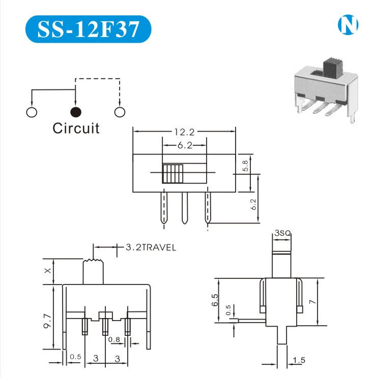 SS-12F37 詳細資料 產品說明: 技術指標: 使用溫度范圍 -20~+70℃ 耐壓 AC250V(50Hz)/min 額定負荷 DC 50V 0.5A 動作力 250±100gf 接觸電阻 ≤0.05Ω 機械壽命 10000次 絕緣電阻 ≥100MΩ