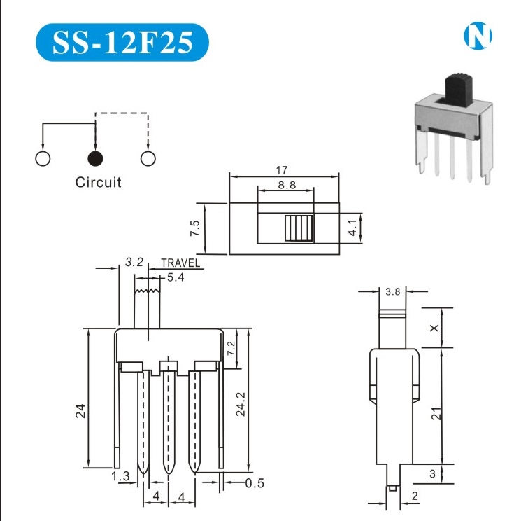 SS-12F25 詳細資料 產品說明: 技術指標: 使用溫度范圍 -20~+70℃ 耐壓 AC250V(50Hz)/min 額定負荷 DC 50V 0.5A 動作力 250±100gf 接觸電阻 ≤0.05Ω 機械壽命 10000次 絕緣電阻 ≥100MΩ