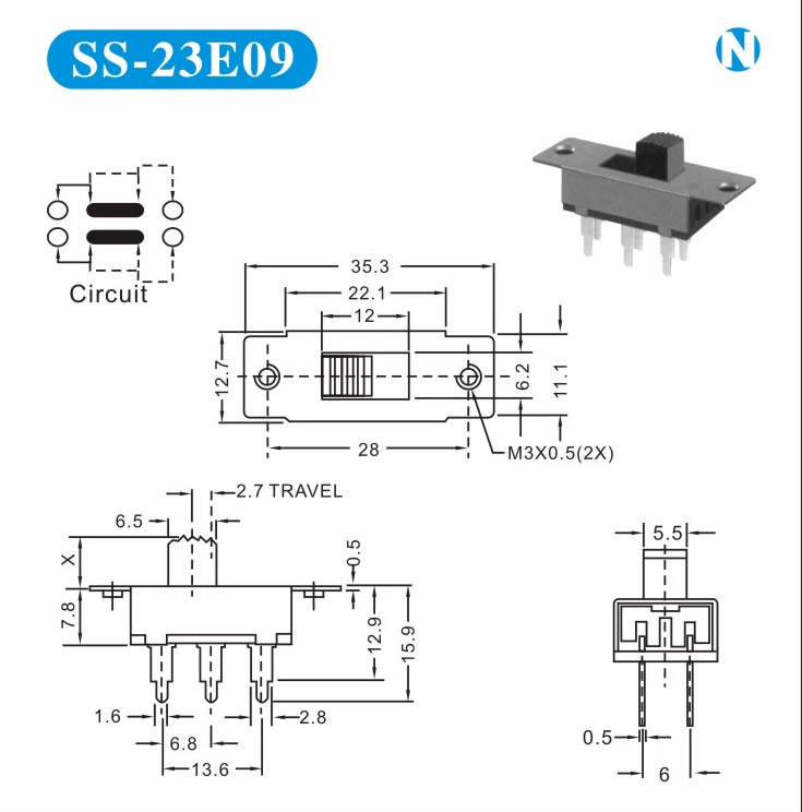 SS-23E09 詳細(xì)資料 產(chǎn)品說(shuō)明: 技術(shù)指標(biāo): 使用溫度范圍 -20~+70℃ 耐壓 AC250V(50Hz)/min 額定負(fù)荷 DC 50V 0.5A 動(dòng)作力 250±100gf 接觸電阻 ≤0.05Ω 機(jī)械壽命 10000次 絕緣電阻 ≥100MΩ