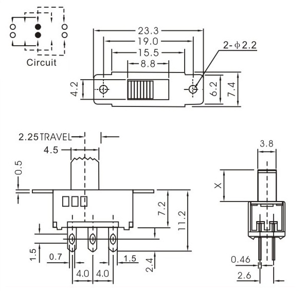 SS-23D32 詳細資料 產品說明: 技術指標: 使用溫度范圍 -20~+70℃ 耐壓 AC250V(50Hz)/min 額定負荷 DC 50V 0.5A 動作力 250±100gf 接觸電阻 ≤0.05Ω 機械壽命 10000次 絕緣電阻 ≥100MΩ