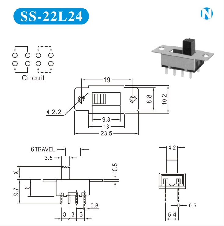 SS-22L24 詳細資料 產品說明: 技術指標: 使用溫度范圍 -20~+70℃ 耐壓 AC250V(50Hz)/min 額定負荷 DC 50V 0.5A 動作力 250±100gf 接觸電阻 ≤0.05Ω 機械壽命 10000次 絕緣電阻 ≥100MΩ