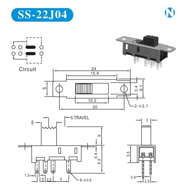 SS-22J04 詳細資料 產品說明: 技術指標: 使用溫度范圍 -20~+70℃ 耐壓 AC250V(50Hz)/min 額定負荷 DC 50V 0.5A 動作力 250±100gf 接觸電阻 ≤0.05Ω 機械壽命 10000次 絕緣電阻 ≥100MΩ