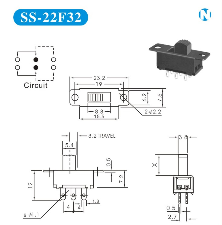SS-22F32 詳細資料 產(chǎn)品說明: 技術指標: 使用溫度范圍 -20~+70℃ 耐壓 AC250V(50Hz)/min 額定負荷 DC 50V 0.5A 動作力 250±100gf 接觸電阻 ≤0.05Ω 機械壽命 10000次 絕緣電阻 ≥100MΩ