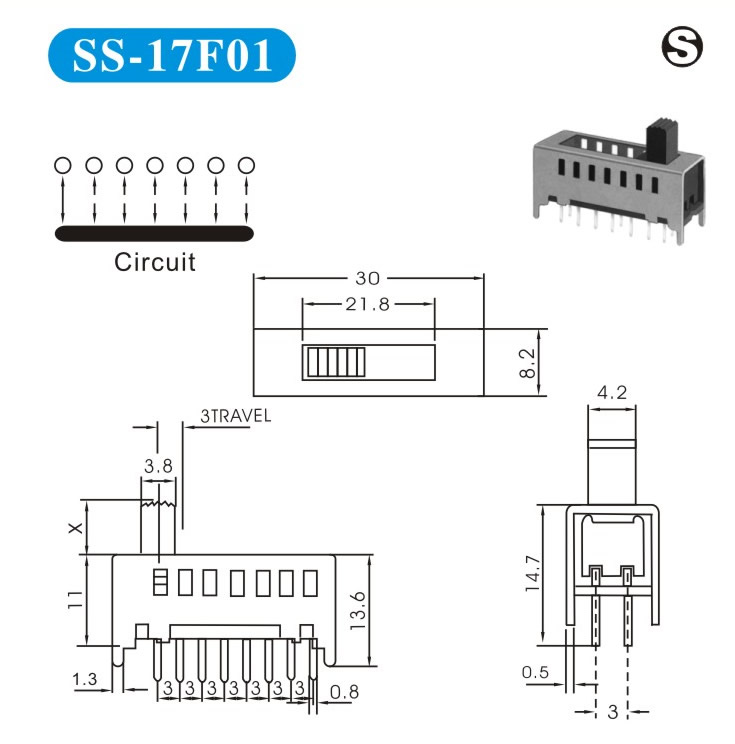 SS-17F01 詳細資料 產(chǎn)品說明: 技術(shù)指標: 使用溫度范圍 -20~+70℃ 耐壓 AC250V(50Hz)/min 額定負荷 DC 50V 0.5A 動作力 250±100gf 接觸電阻 ≤0.05Ω 機械壽命 10000次 絕緣電阻 ≥100MΩ