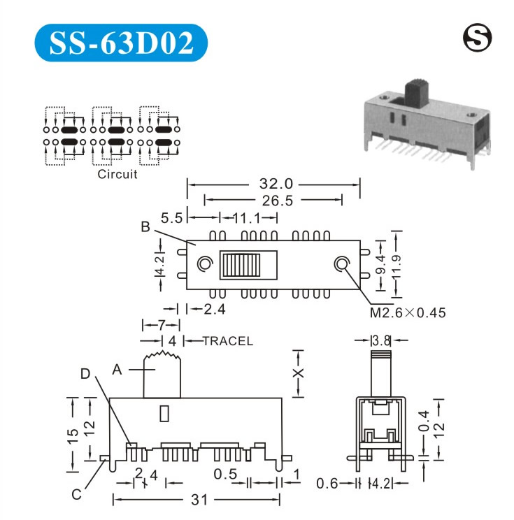 SS-63D02 詳細(xì)資料 產(chǎn)品說明: 技術(shù)指標(biāo): 使用溫度范圍 -20~+70℃ 耐壓 AC250V(50Hz)/min 額定負(fù)荷 DC 50V 0.5A 動(dòng)作力 250±100gf 接觸電阻 ≤0.05Ω 機(jī)械壽命 10000次 絕緣電阻 ≥100MΩ
