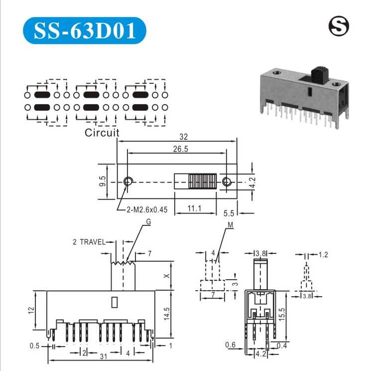 SS-63D01 詳細資料 產品說明: 技術指標: 使用溫度范圍 -20~+70℃ 耐壓 AC250V(50Hz)/min 額定負荷 DC 50V 0.5A 動作力 250±100gf 接觸電阻 ≤0.05Ω 機械壽命 10000次 絕緣電阻 ≥100MΩ