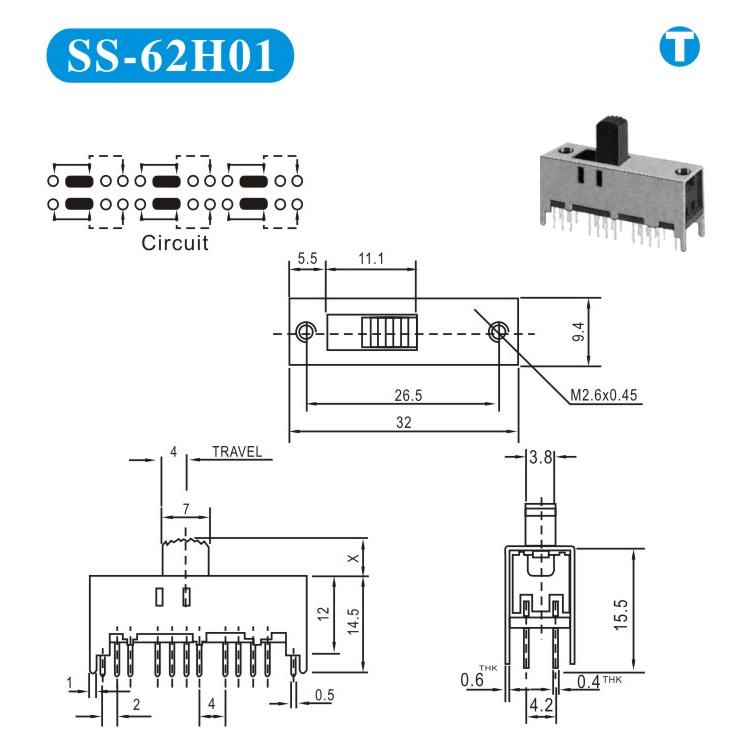 SS-62H01 詳細資料 產品說明: 技術指標: 使用溫度范圍 -20~+70℃ 耐壓 AC250V(50Hz)/min 額定負荷 DC 50V 0.5A 動作力 250±100gf 接觸電阻 ≤0.05Ω 機械壽命 10000次 絕緣電阻 ≥100MΩ