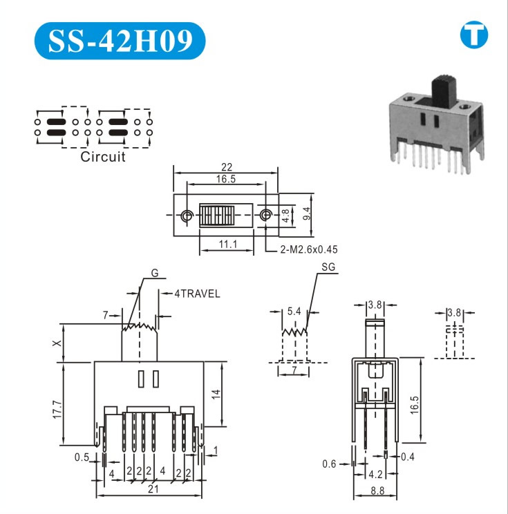 SS-42H09 詳細資料 產品說明: 技術指標: 使用溫度范圍 -20~+70℃ 耐壓 AC250V(50Hz)/min 額定負荷 DC 50V 0.5A 動作力 250±100gf 接觸電阻 ≤0.05Ω 機械壽命 10000次 絕緣電阻 ≥100MΩ