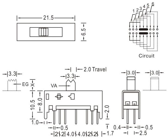 SS-26D01 詳細資料 產(chǎn)品說明: 技術指標: 使用溫度范圍 -20~+70℃ 耐壓 AC250V(50Hz)/min 額定負荷 DC 50V 0.5A 動作力 250±100gf 接觸電阻 ≤0.05Ω 機械壽命 10000次 絕緣電阻 ≥100MΩ