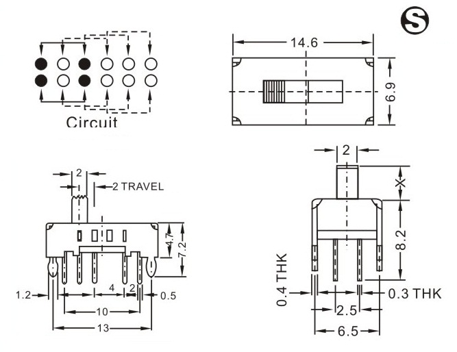 SS-24D02 詳細資料 產品說明: 技術指標: 使用溫度范圍 -20~+70℃ 耐壓 AC250V(50Hz)/min 額定負荷 DC 50V 0.5A 動作力 250±100gf 接觸電阻 ≤0.05Ω 機械壽命 10000次 絕緣電阻 ≥100MΩ