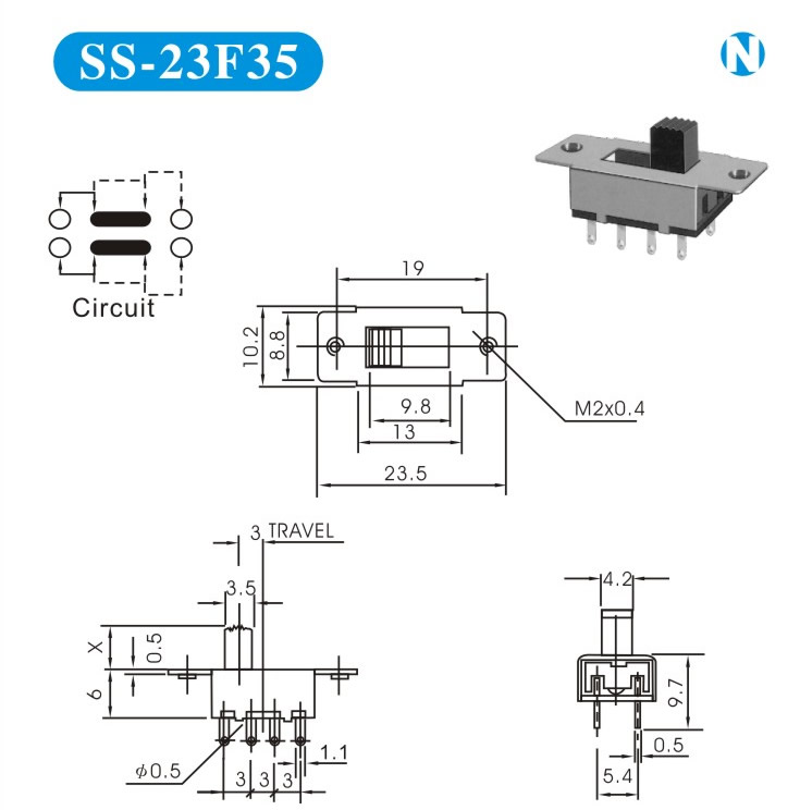 SS-23F35 詳細資料 產品說明: 技術指標: 使用溫度范圍 -20~+70℃ 耐壓 AC250V(50Hz)/min 額定負荷 DC 50V 0.5A 動作力 250±100gf 接觸電阻 ≤0.05Ω 機械壽命 10000次 絕緣電阻 ≥100MΩ