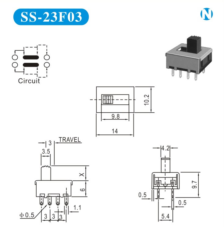 SS-23F03 詳細資料 產(chǎn)品說明: 技術(shù)指標: 使用溫度范圍 -20~+70℃ 耐壓 AC250V(50Hz)/min 額定負荷 DC 50V 0.5A 動作力 250±100gf 接觸電阻 ≤0.05Ω 機械壽命 10000次 絕緣電阻 ≥100MΩ